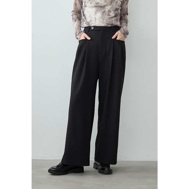 【日本製】ダブルクロス ポケットタック パンツ Color:ブラック <デザイン> よい肉感とさらりとした肌触り、そしてしなやかな落ち感を兼ね備えた、日本製ダブルクロス素材を使用したタックパンツ。 ポケット口に施されたタックが、立体的なシルエットとほどよい抜け感を生み出し、モードにもカジュアルにも活躍する一本です。 紫外線防止・透け防止・しわ防止などの機能性に加え、ご自宅で手洗い可能なイージーケア仕様で、デイリーに活躍。 ウエストまわりはすっきり、ヒップから裾にかけてはゆるやかに広がるワイドシルエットで、美しいラインを演出します。 立体的なシルエットとタックディテールで、腰まわりをすっきり見せながら、体のラインを拾いすぎない程よいワイド感。トップスをタックインすれば、スタイルアップ効果も抜群です。 足元はローファーやミュールで抜け感をプラス、バッグはレザー素材など質感に変化をつけて、スタイリングに深みを。アクセサリーはシルバーでクールに仕上げても、ゴールドで華やかさを足しても◎ Size 【Mサイズ】 総丈:100c ウエスト:67c ヒップ:103c わたり:73c 股上:30c 股下:70c 裾巾:30c 【Lサイズ】 総丈:101.3c ウエスト:70c ヒップ:106c わたり:75c 股上:30.5c 股下:73c 裾巾:31c Model: 168cm(Mサイズ着用) 透け感:なし(裏地なし) Composition:ポリエステル72%,レーヨン21%,ポリウレタン7% Made in : JAPAN No.252A1404 ※サンプル撮影時より多少の仕様変更や、実際の商品とは光の加減等で色が異なることがございます。ご了承ください。 ------------------------ 【商品のお届け時期】 ・各種お支払い確定後、原則5日以内に発送いたします。 ・後払い決済の場合は注文確定後、原則5日営業日以内に発送いたします。 ・予約商品に関しましては、発送までにお時間を頂戴しております。 ※発送予定が異なる商品を同じカートでご購入の際は、納期の【最も遅い予定にあわせて発送】となりますのでお気をつけください。 ※お支払い確定後のキャンセルは、原則お受けできかねますので、ご注意おねがいいたします。