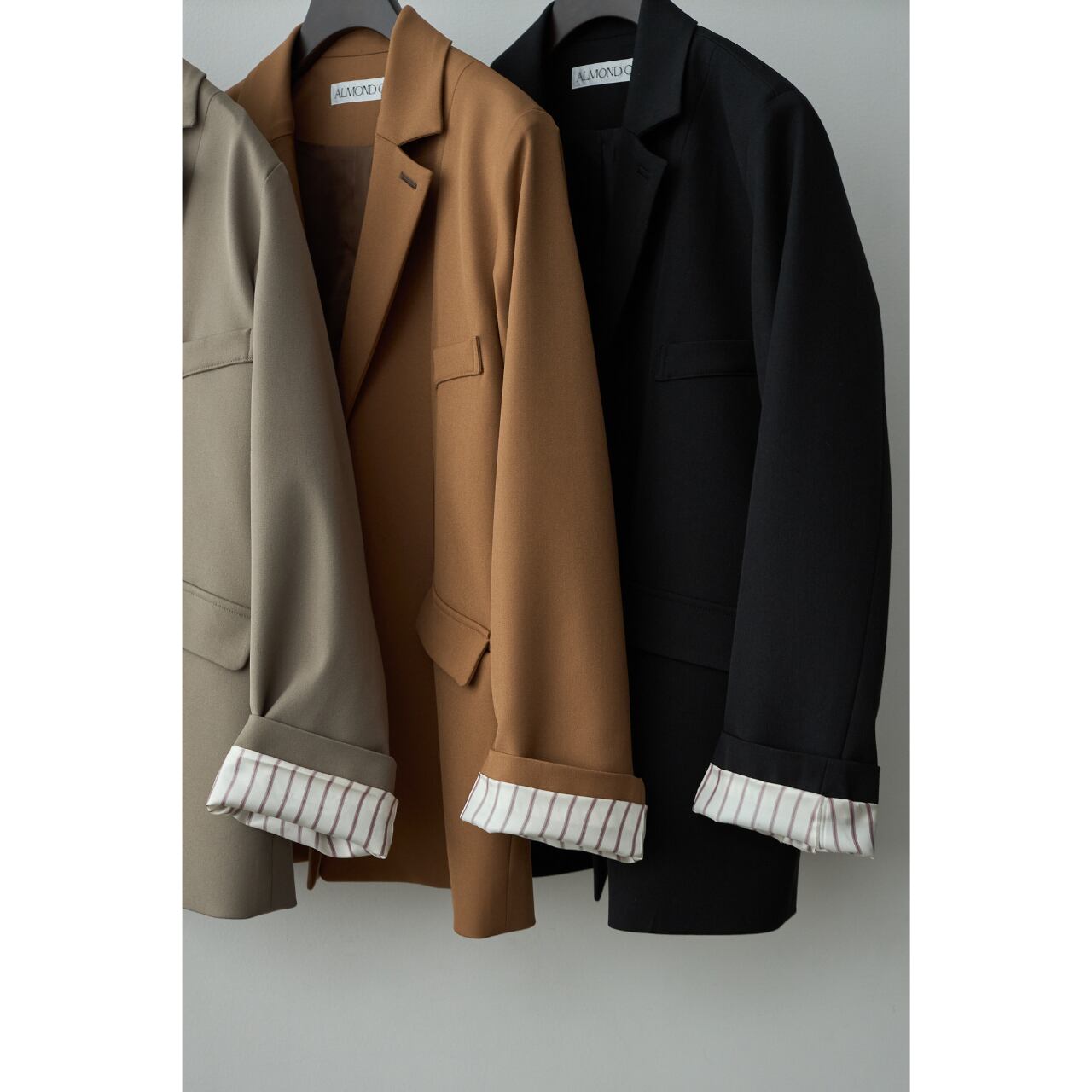 上品なツヤ感と適度なハリを持つツイル素材で仕立てた、ALMOND*OILらしいこだわりのテーラージャケット。