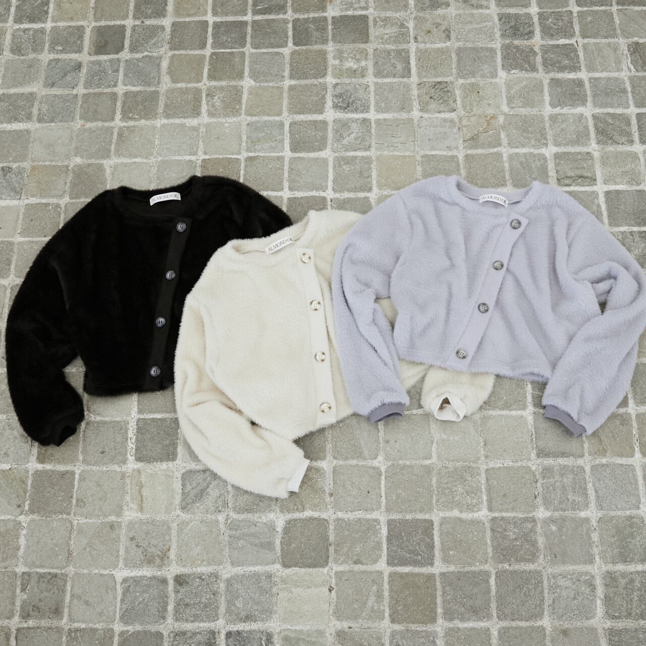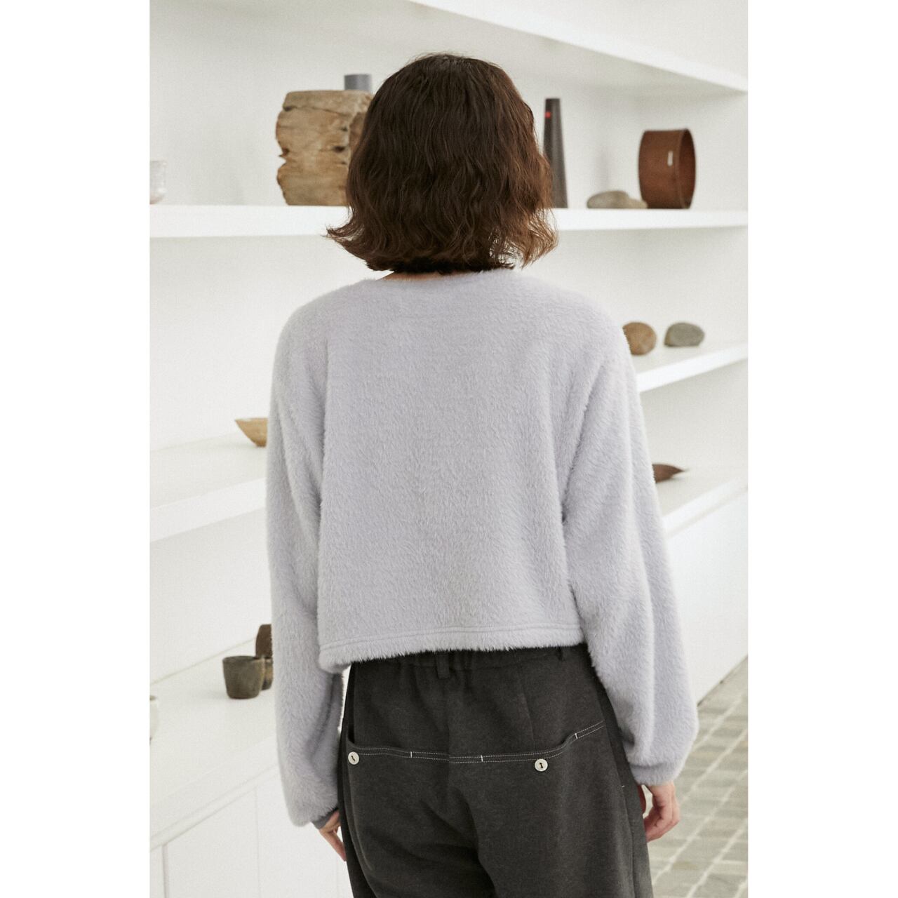 ふんわりとしたシャギー素材が魅力のプルオーバー。