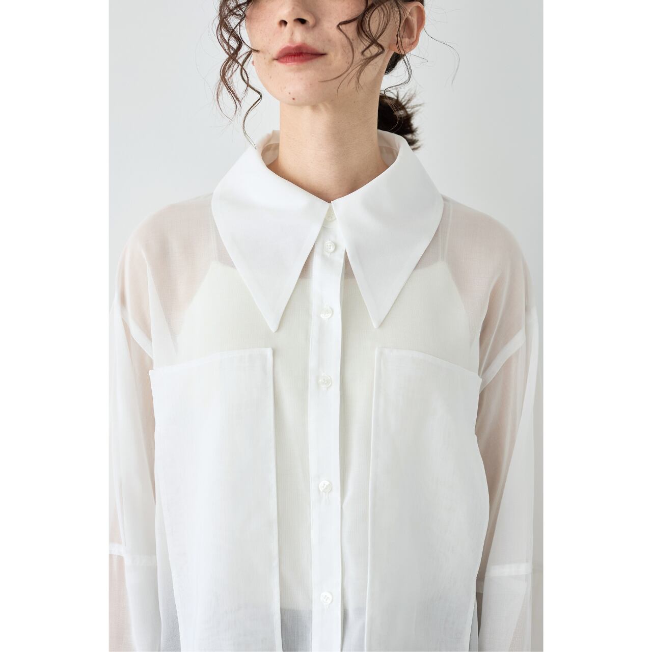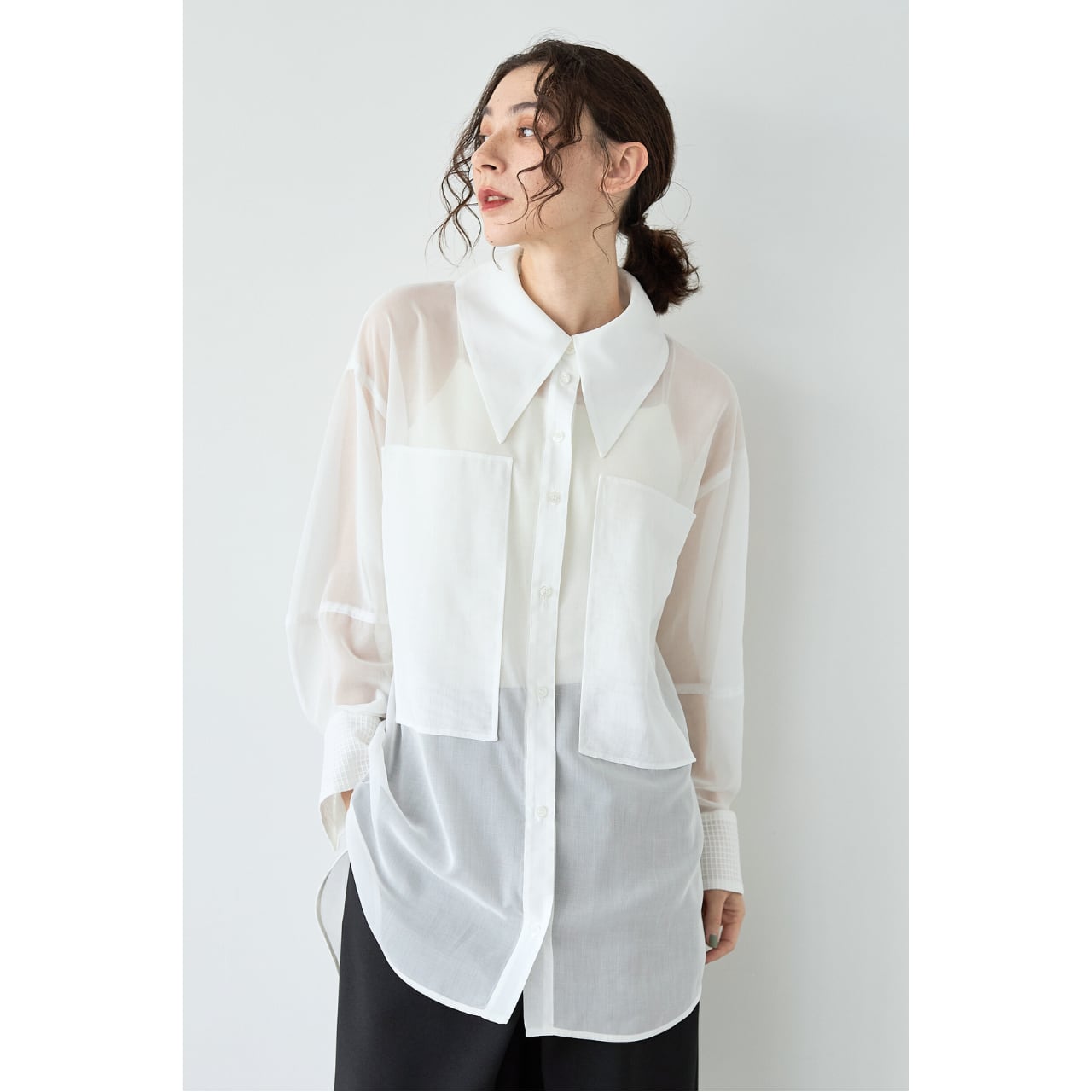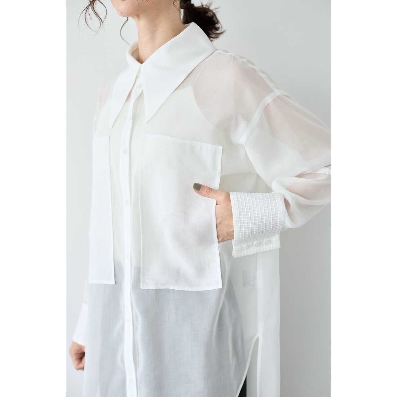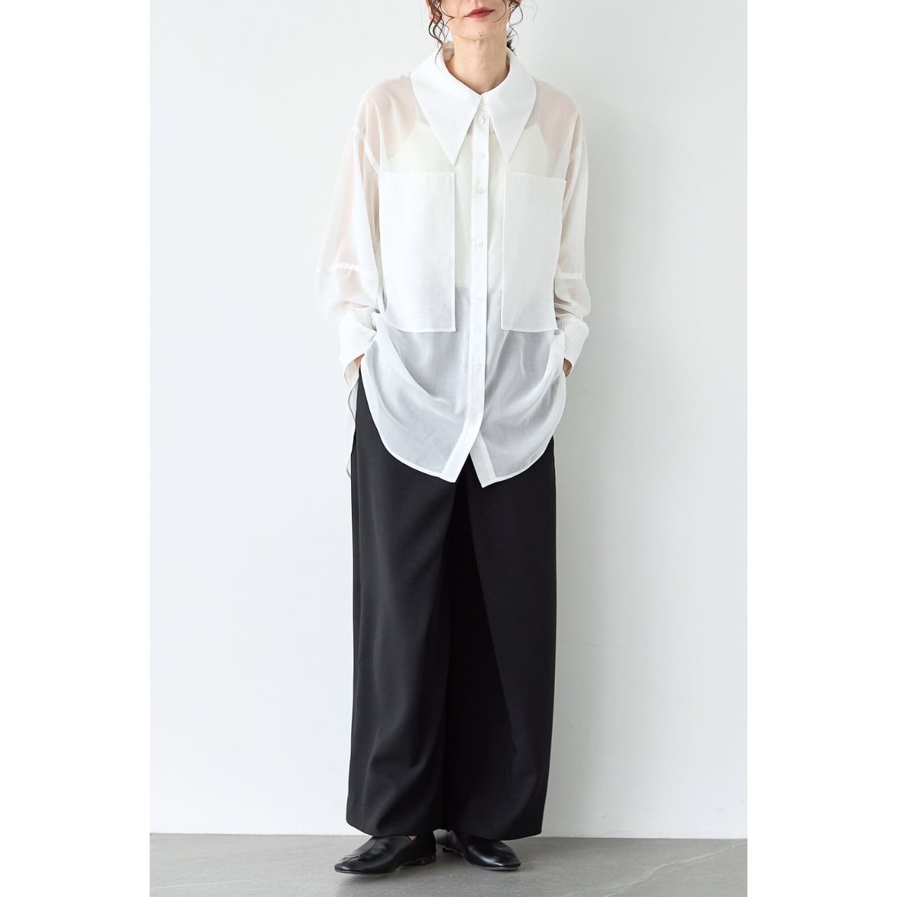 【3/下旬~発送予定】 日本製 big pocket sheer blouse/white