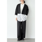 胸元のビックポケットと程よく構築的なエリが、シンプルながらもモードな存在感を演出します。