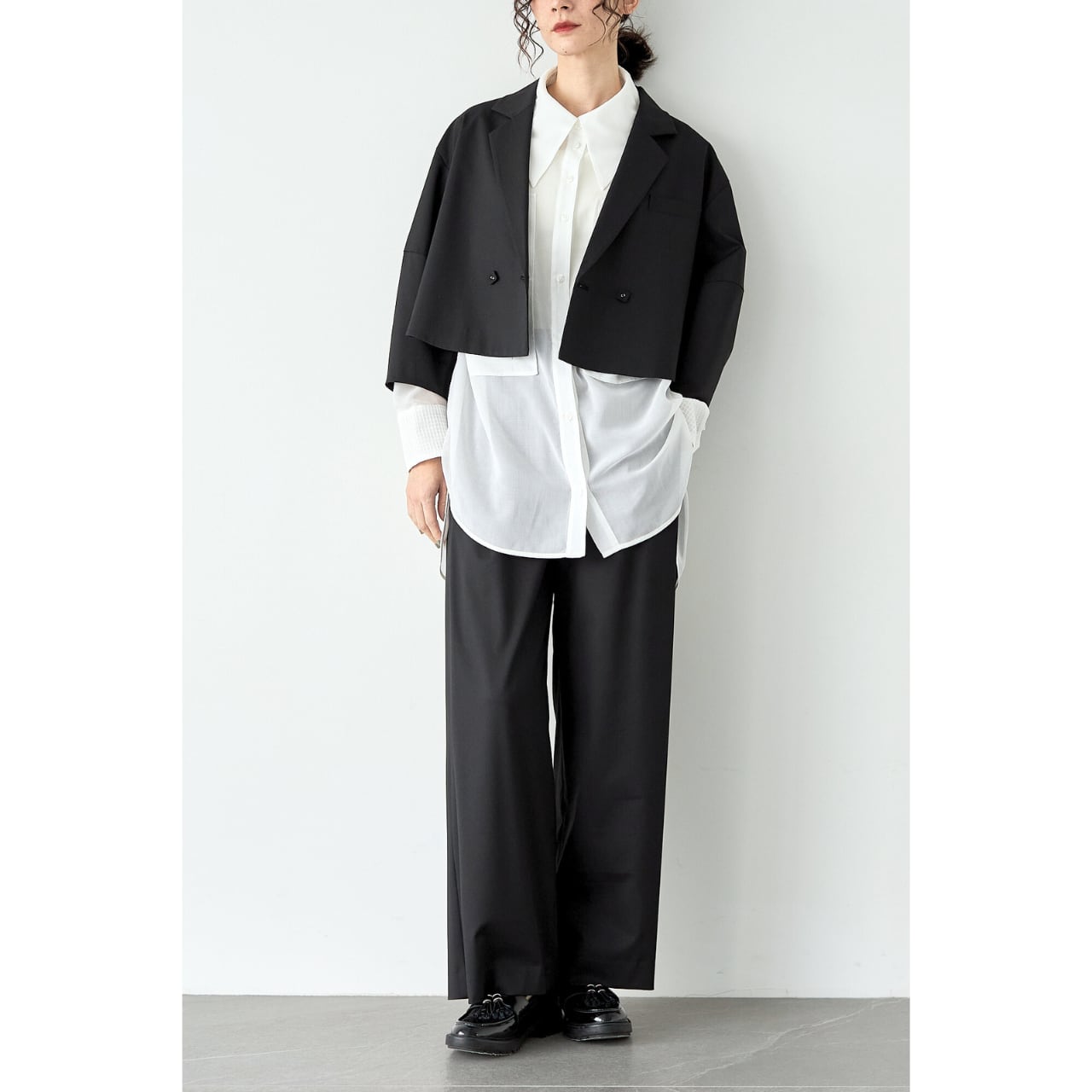 クロップト丈のカーディガンやショート丈トップスを重ねると、縦のラインが強調され、バランス良くまとまるのもポイント。