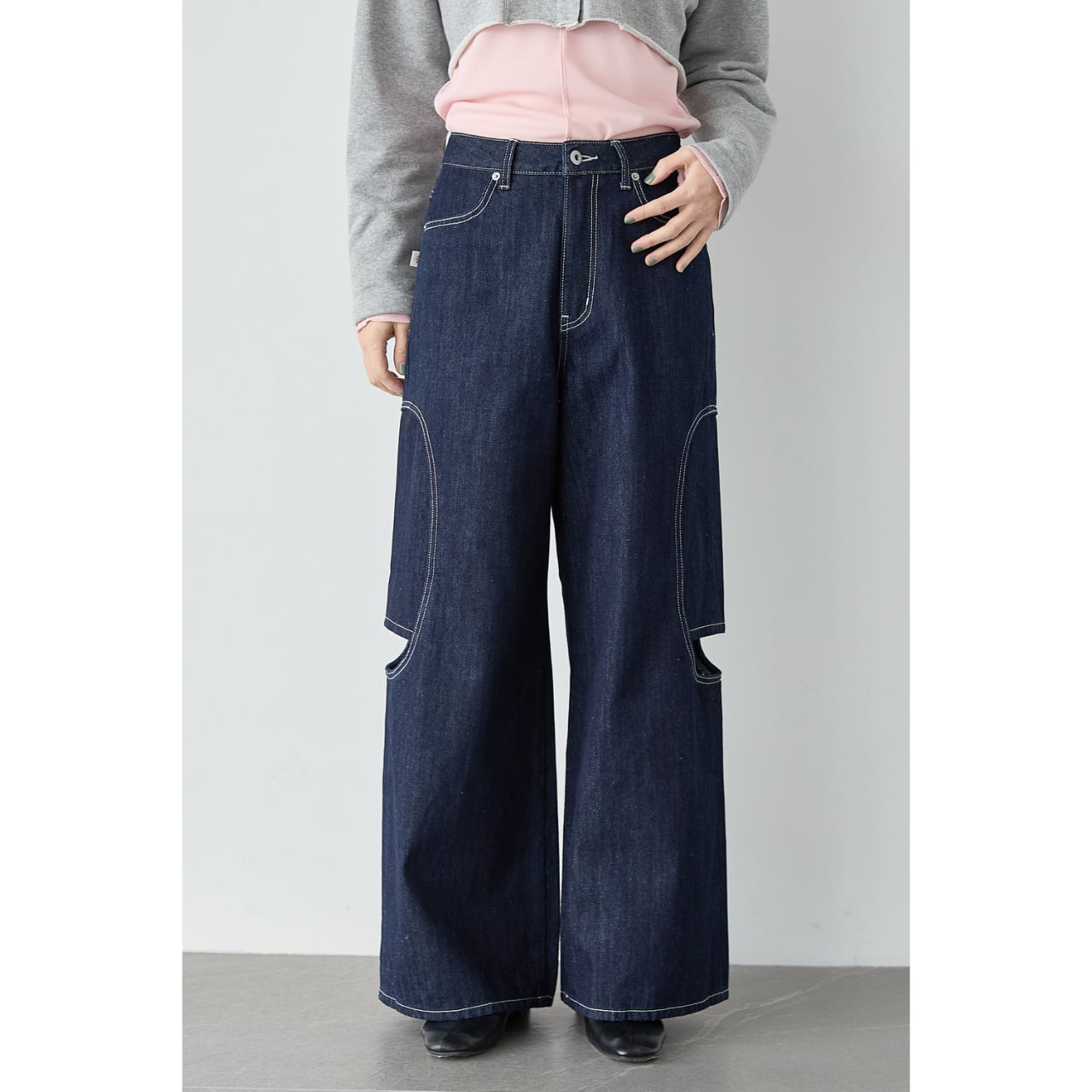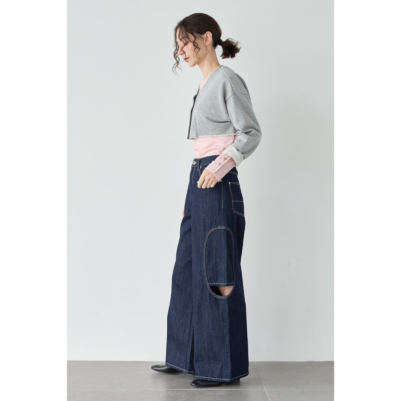 ショート丈トップスやクロップトカーディガンと合わせると、腰位置が高く見え、スタイルアップ効果も◎。