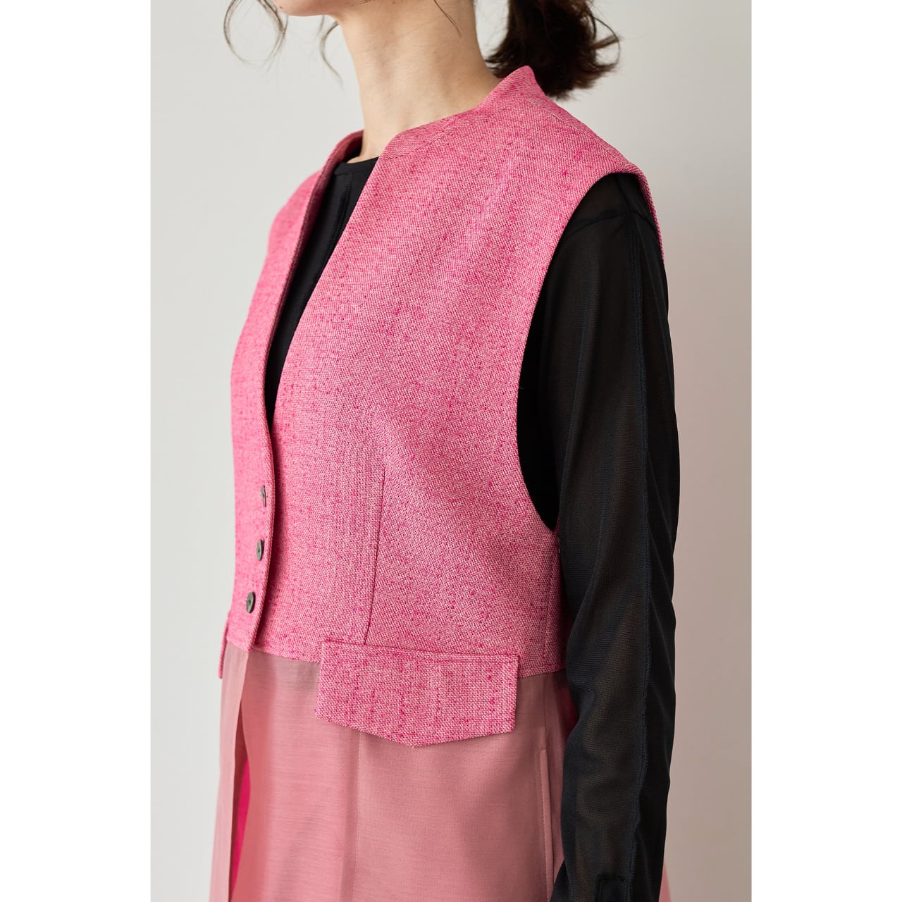 【3/下旬~発送予定】 日本製 slub tweed docking gilet /pink