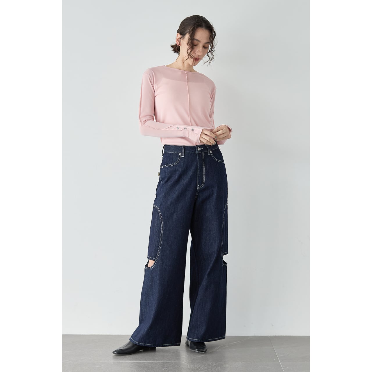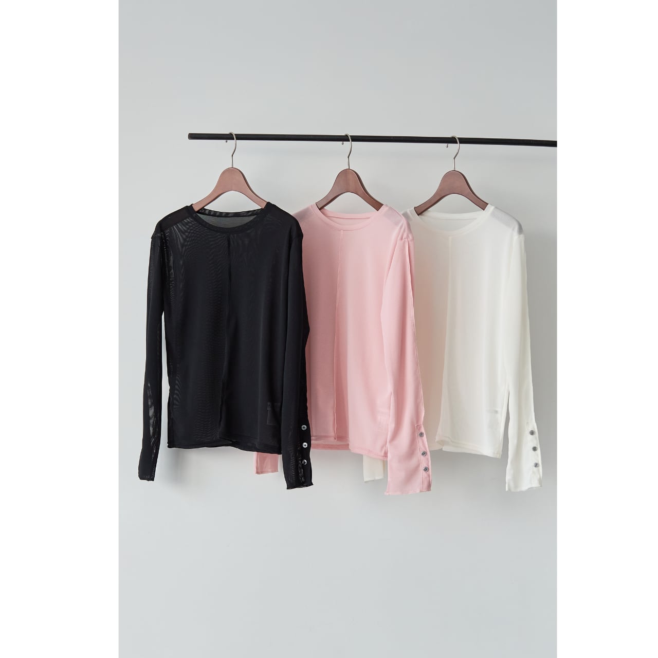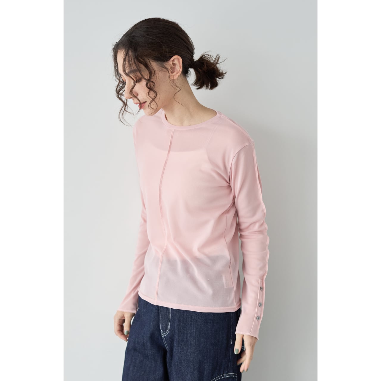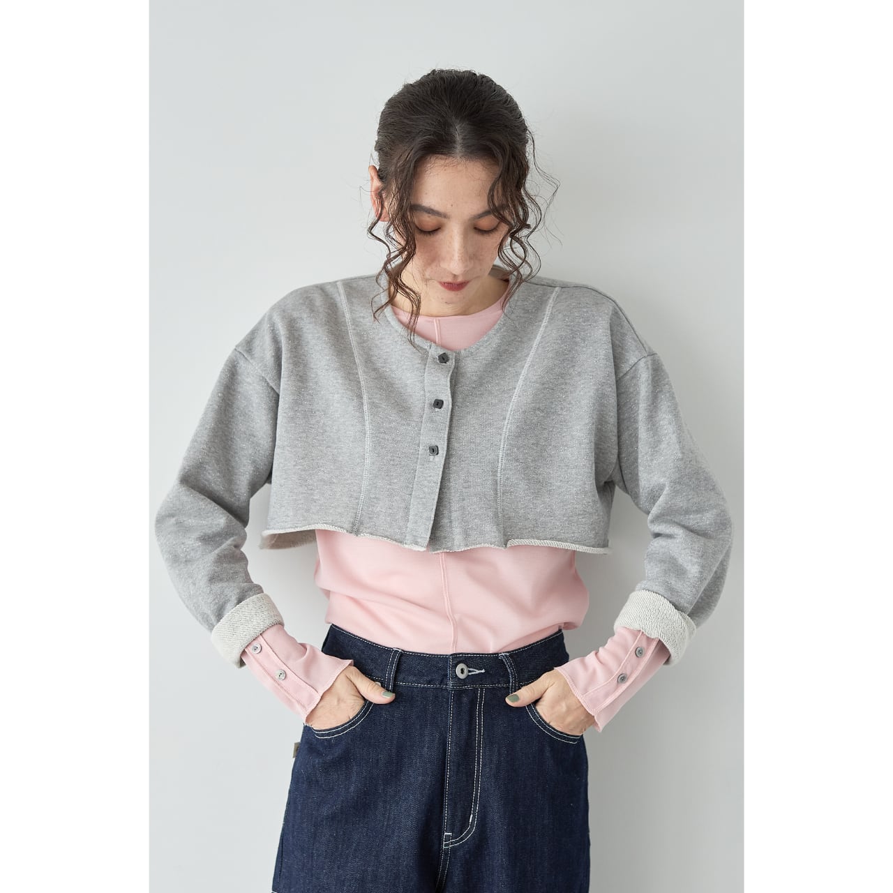 袖口には見せかけボタンのデザインを施し、ジャケットやオールインワンから覗く袖が、スタイリングのアクセントに。