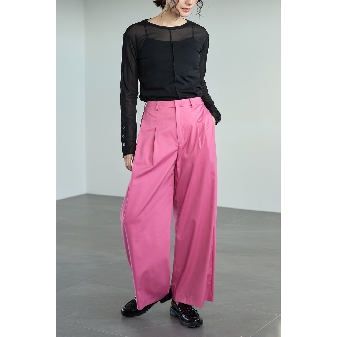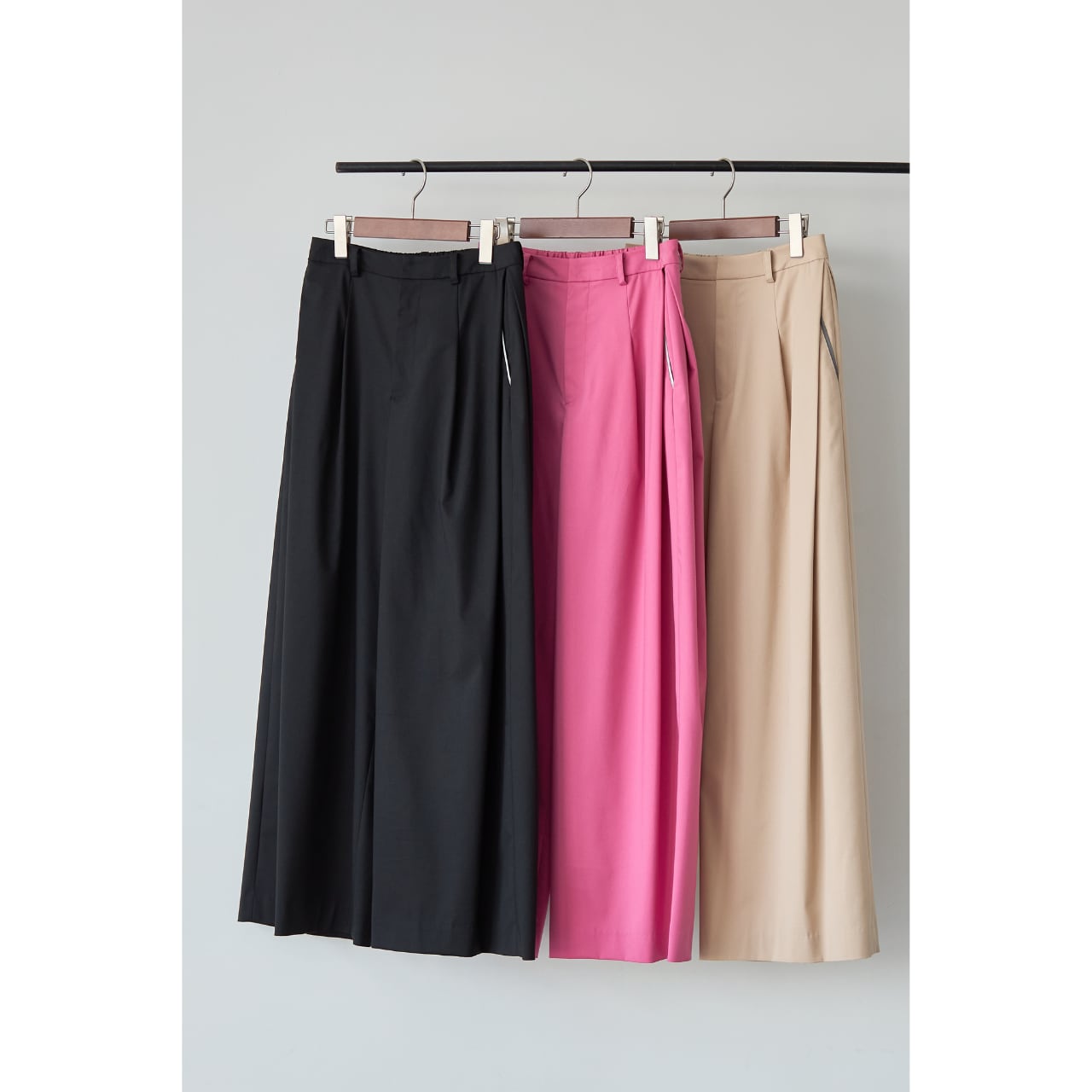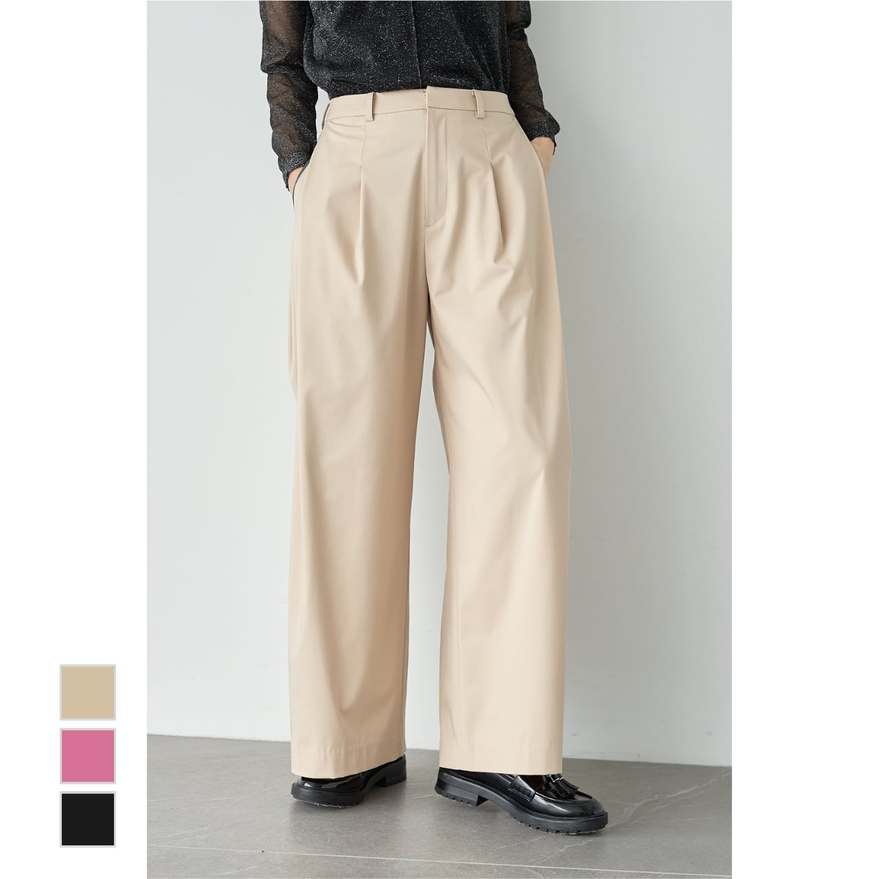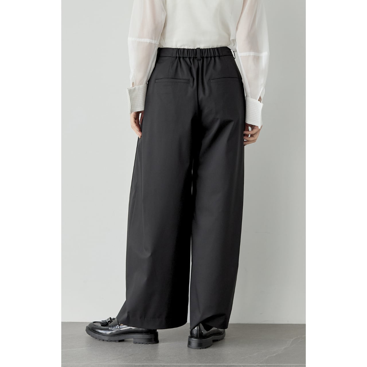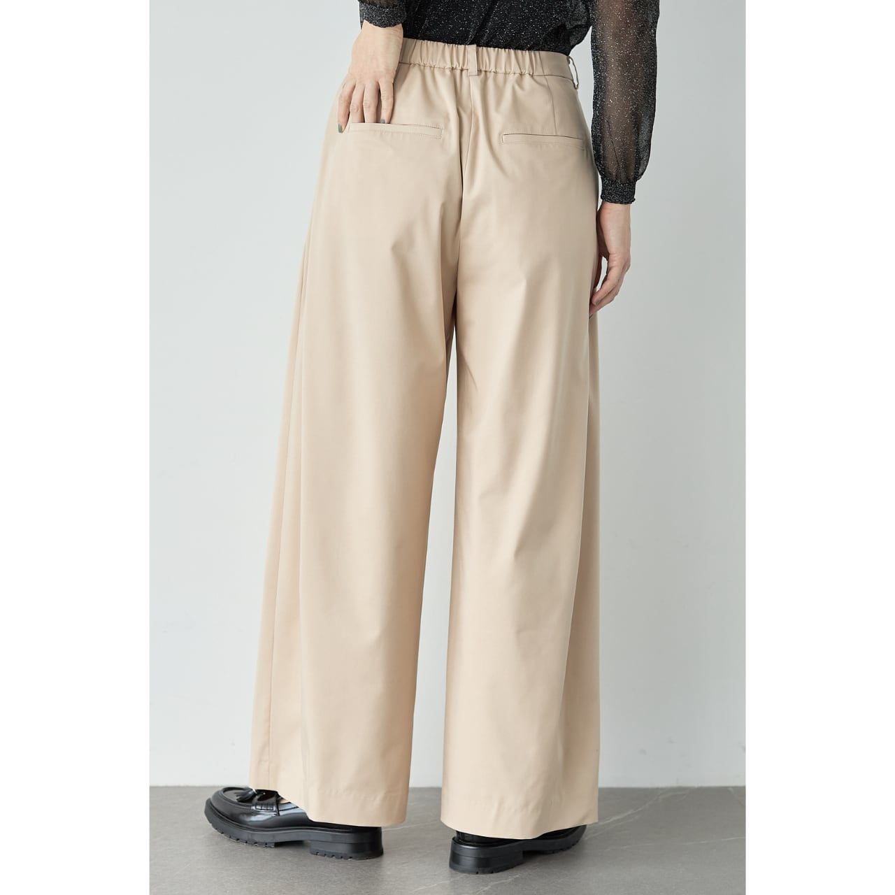 足元はパンプス、ローファー、フラットシューズまで幅広く合わせられ、シーンレスで着回せる一本です。