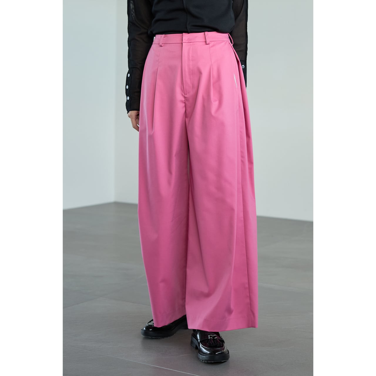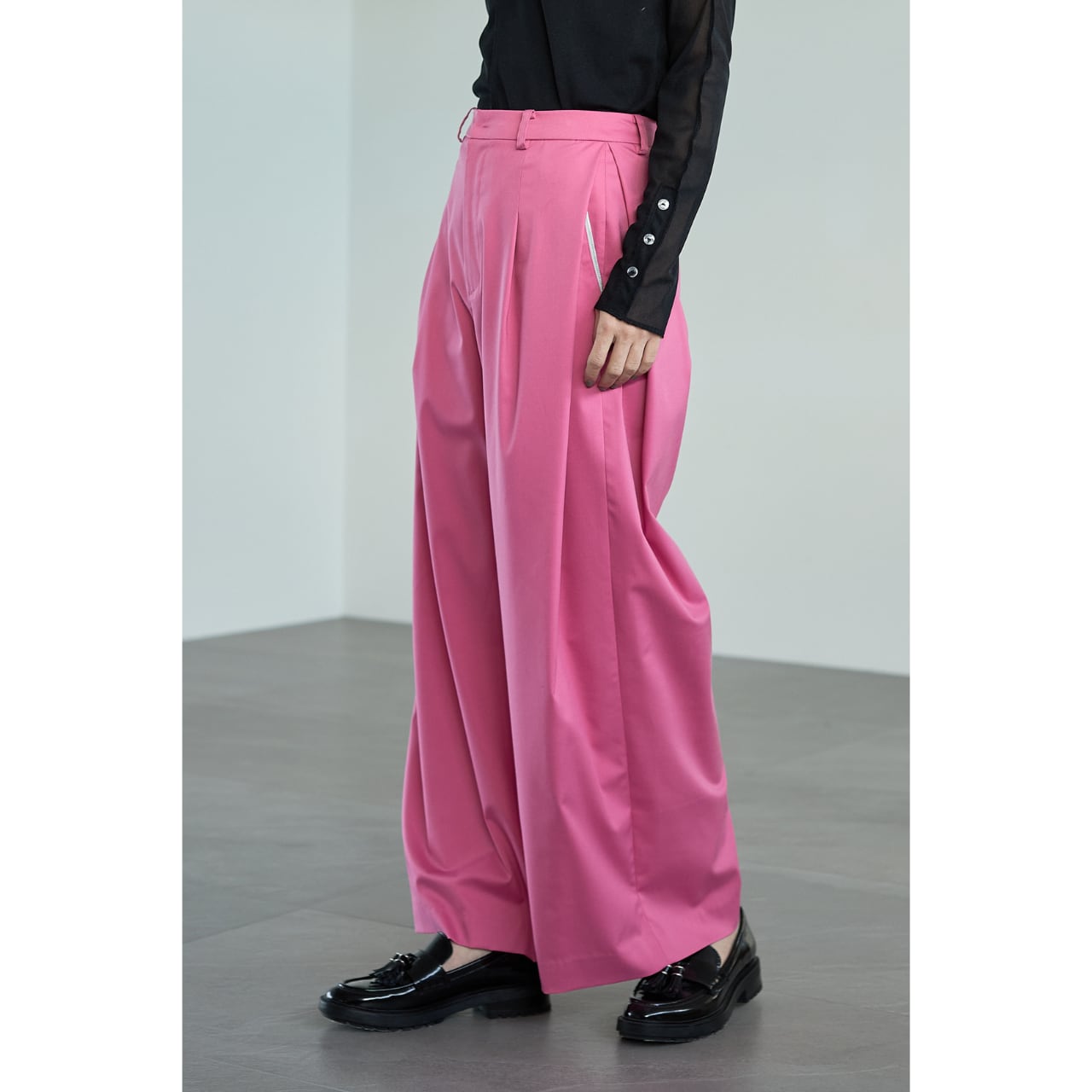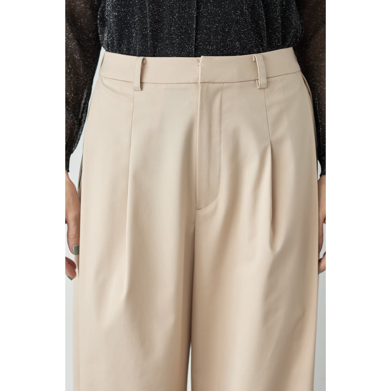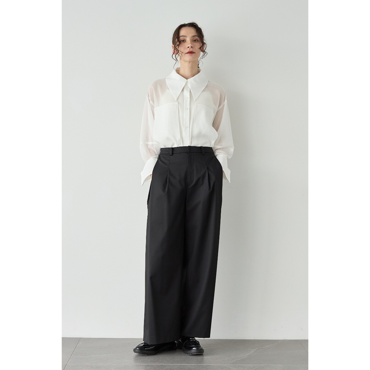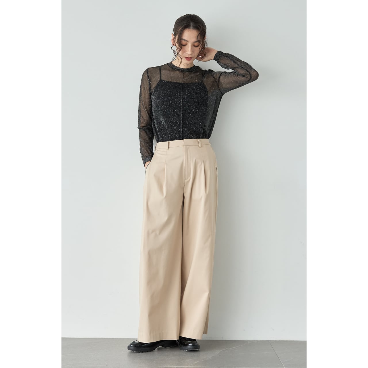 足元はパンプス、ローファー、フラットシューズまで幅広く合わせられ、シーンレスで着回せる一本です。