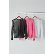 身体のラインを拾いにくい編み地に仕上げているため、一枚でも安心して着用できます。