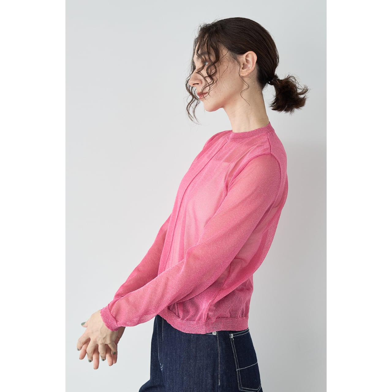 【3/上旬~発送予定】 日本製 sheer lame knit pullover/pink