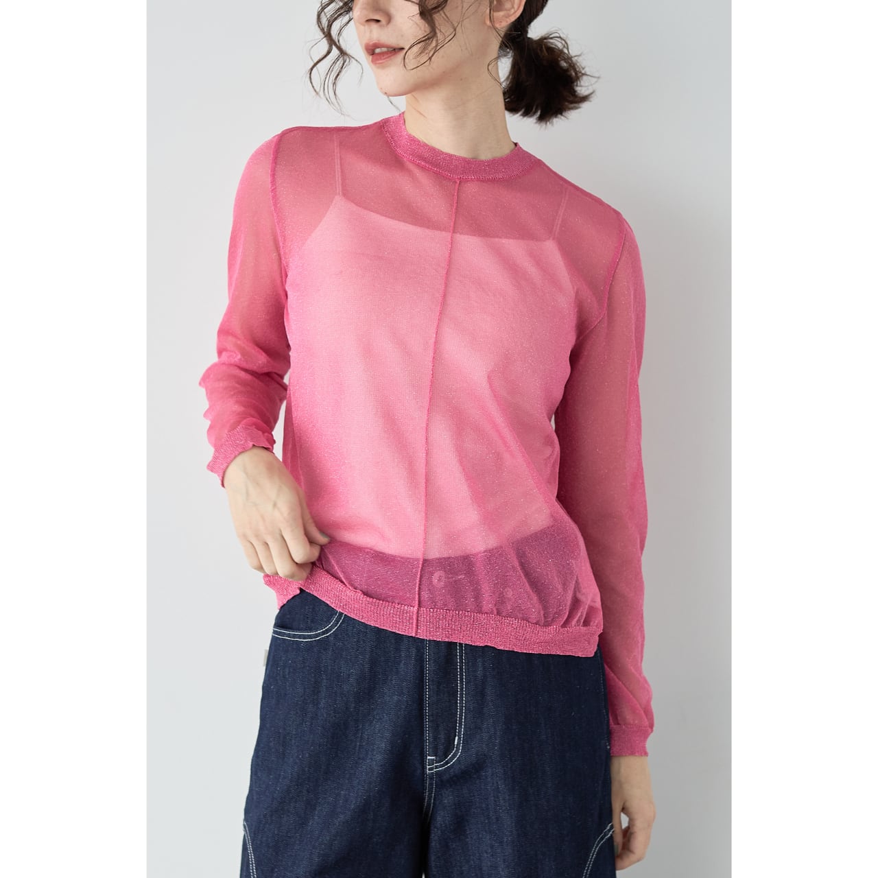 トレンドのシアー素材に、繊細で上品なラメを織り込んだ、大人のためのラメニットプルオーバー。