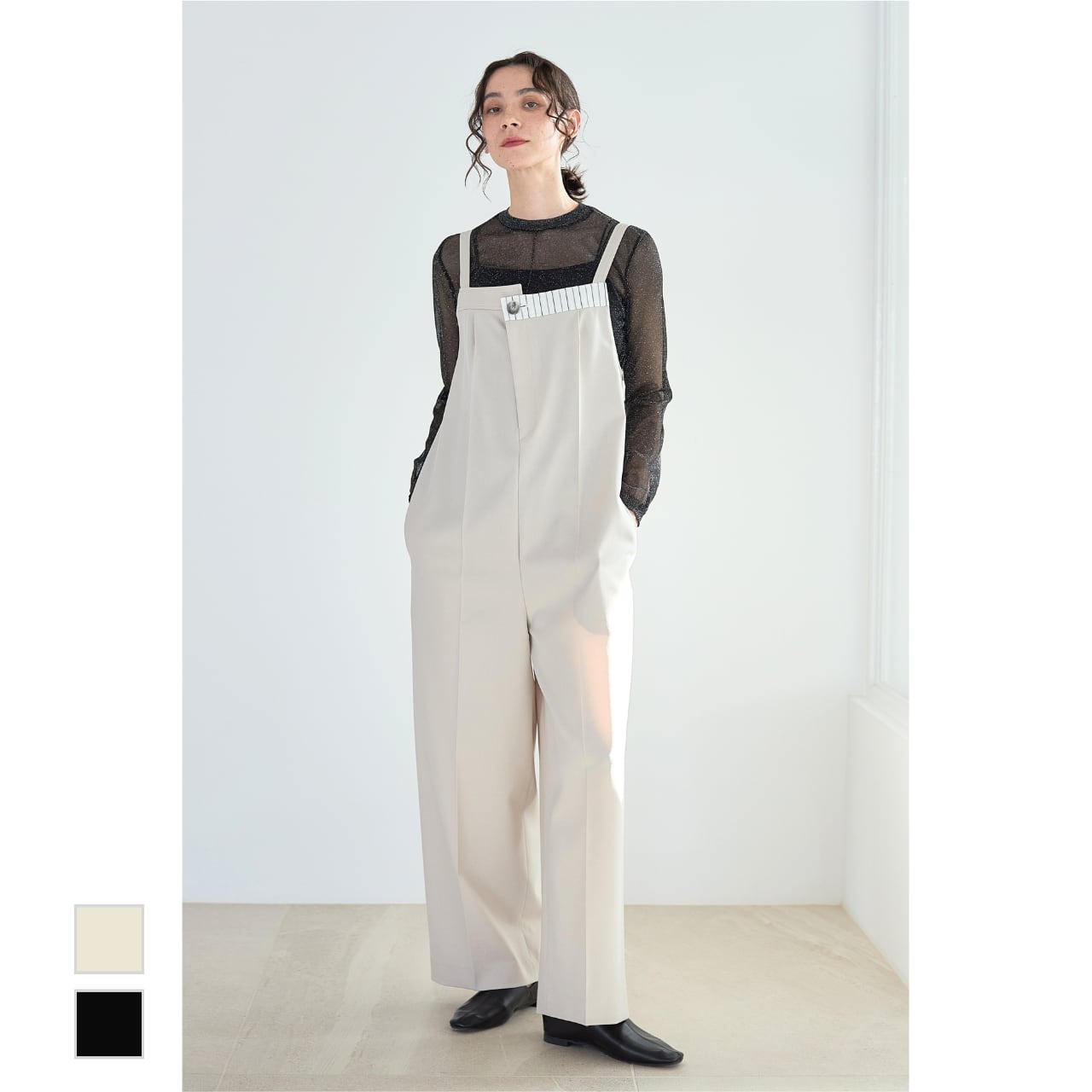 レイヤード次第で印象が変わる、着回し力の高いサロペットです。
