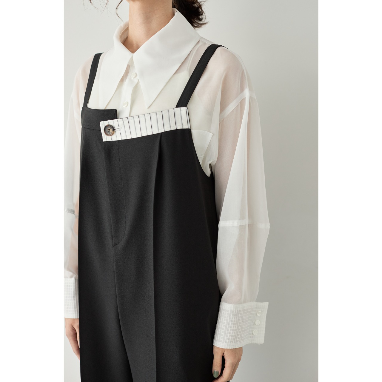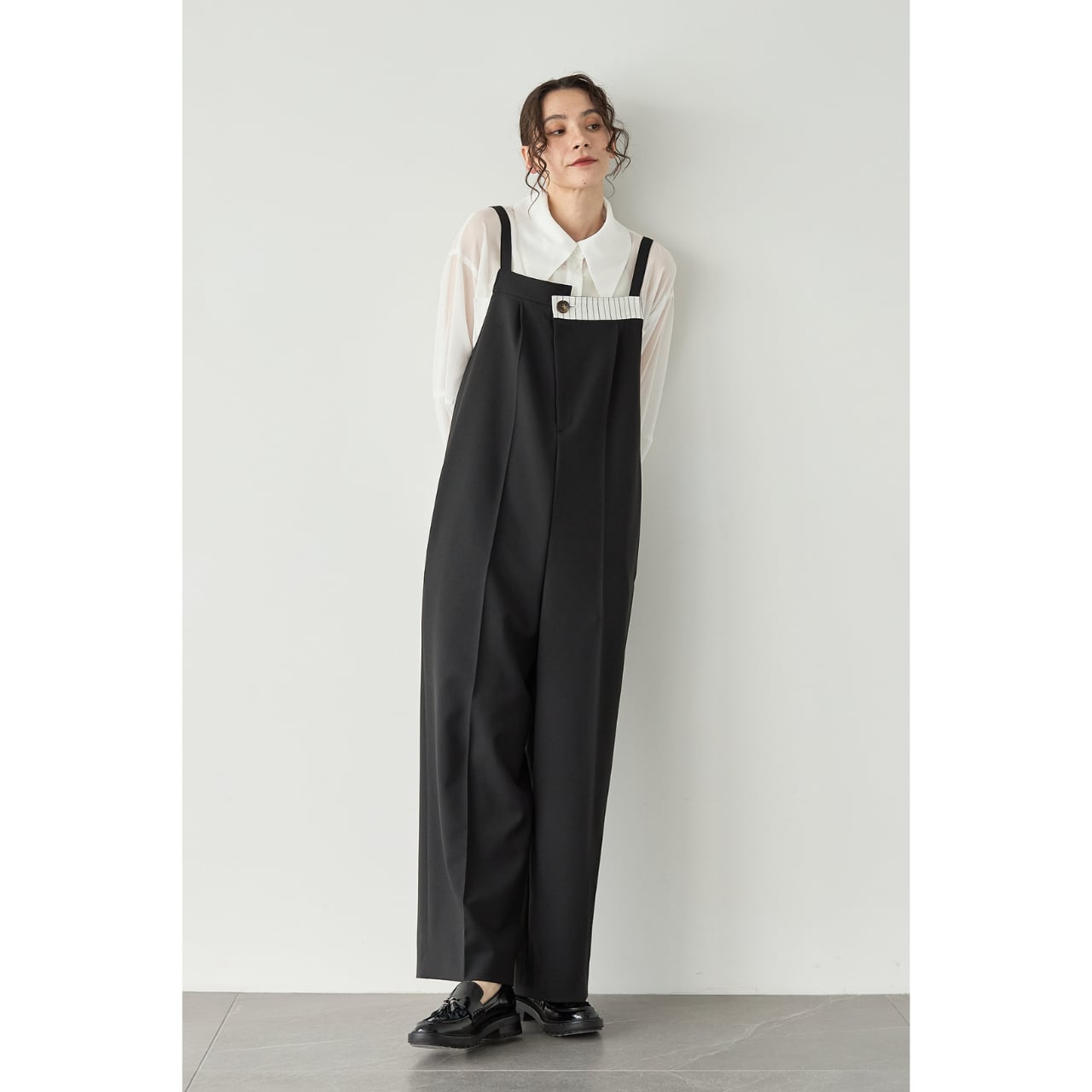 ゆったりとしたストレートシルエットで仕上げた、大人のためのサロペット。