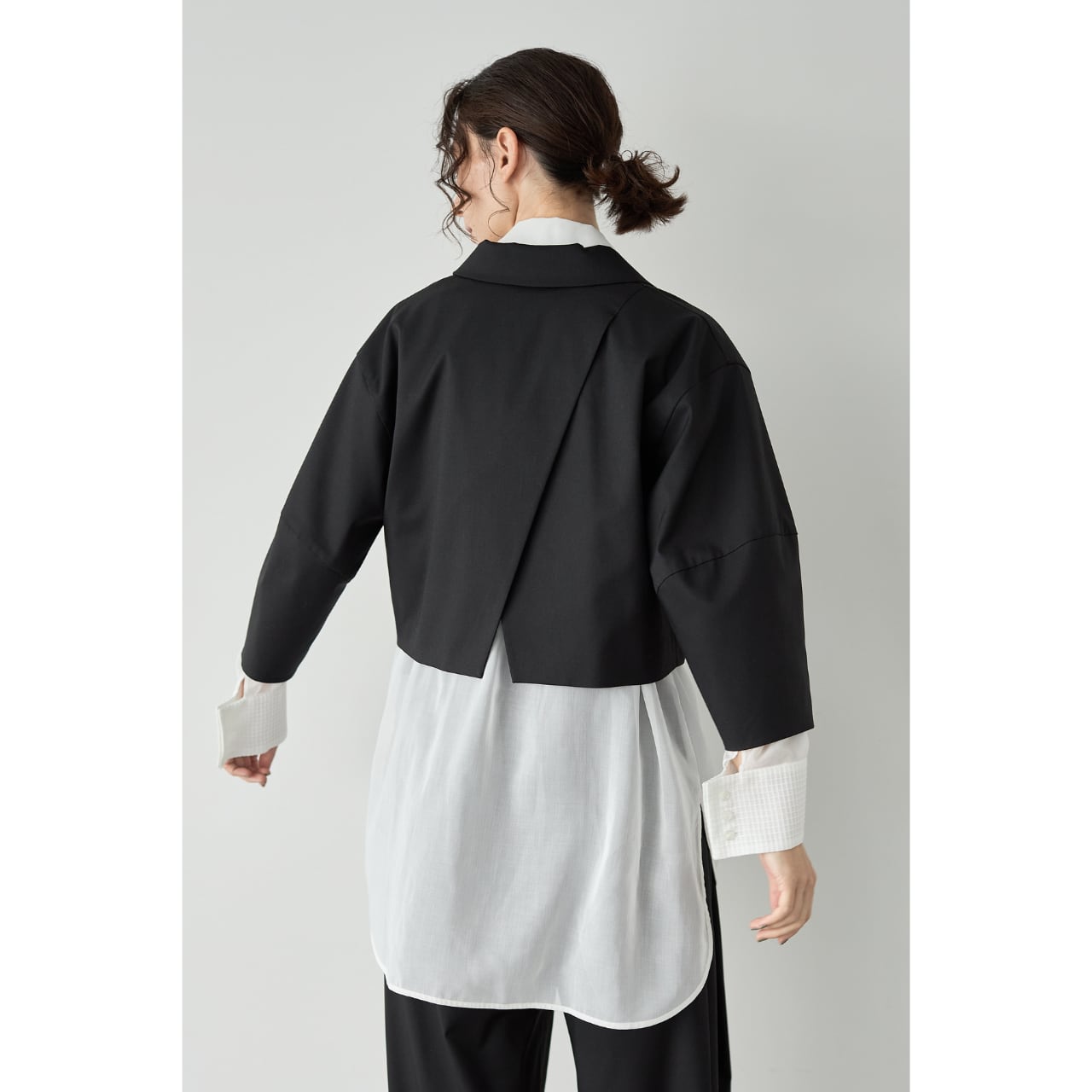 後ろ見頃は肩から裾にかけて斜め方向に切替仕様でバックスタイルにも抜かりなく◎